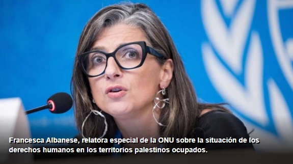 Albanese pide aislar a Israel por bloquear ayuda a palestinos