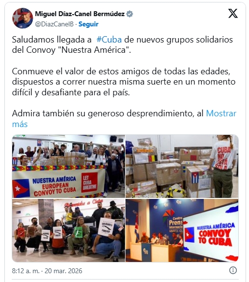 "Cuba no lo olvidará jamás": Díaz-Canel saluda la llegada de la ayuda del convoy humanitario