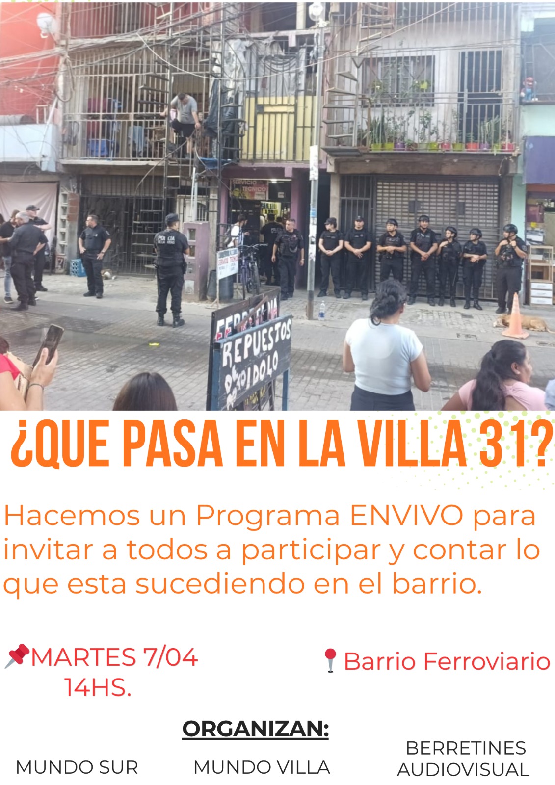 Tras el hostigamiento policial al cineasta Alan Gómez en pleno rodaje, medios comunitarios y organizaciones sociales de la Villa 31 convocan a un streaming en vivo este martes. Denuncian un «efecto cerrojo» que criminaliza la cultura y asfixia la economía popular bajo la excusa del ordenamiento urbano.