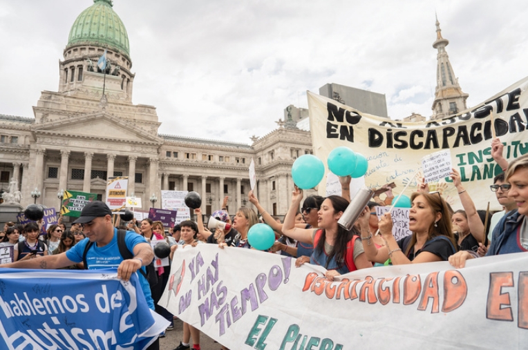 La comunidad de la discapacidad —familias, amigos, profesionales, instituciones, estudiantes, concurrentes, legisladores, personalidades de la cultura y organismos de derechos humanos— se movilizó este miércoles nuevamente para exigir que se aplique la ley de Emergencia.