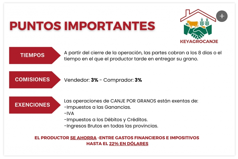 A través del "agrocanje", los productores ahora pueden acceder directamente a la compra de inmuebles, tanto departamentos como campos a cambio de granos. "Keyagrocanje tiene una alianza con Asociación de Cooperativas Argentinas (ACA), un grupo con 137 cooperativas, 61 centros de desarrollo, 37 acopios privados y 4 puertos de exportación", dice la página de la inmobiliaria. ACA es en rigor uno de los mayores traders de ganos del país.