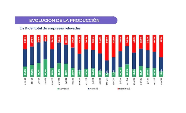 En producción, las pymes registraron un Índice de Difusión de -43,3 puntos, frente a -34,8 puntos en las empresas de mayor tamaño.