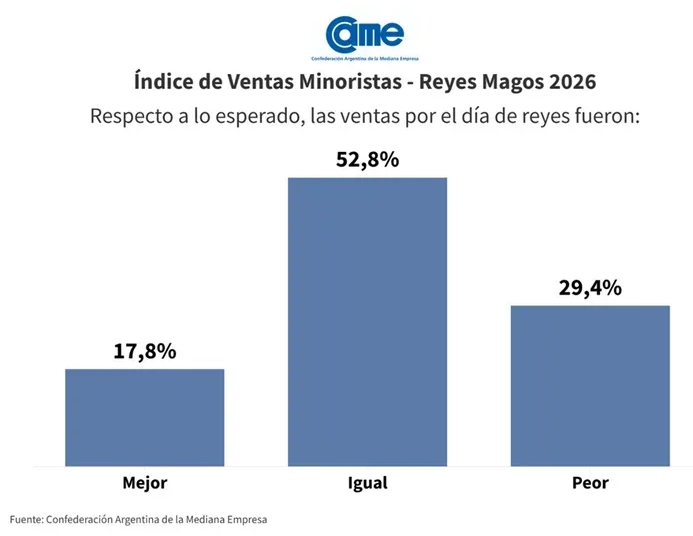 La celebración de Reyes mostró un comportamiento desparejo y limitado en gran parte de los rubros comerciales. El informe de CAME advierte que el movimiento fue escaso y sin picos generalizados, a pesar de la amplia oferta de promociones.