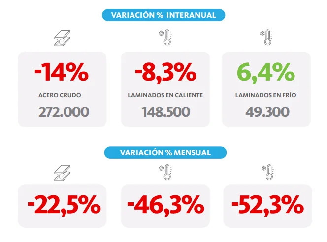 "El sector siderúrgico continúa operando en niveles de actividad por debajo de su potencial histórico", señalaron desde la cámara, al tiempo que apuntaron contra la competencia internacional, especialmente la proveniente de China, a la que calificaron como "desleal".