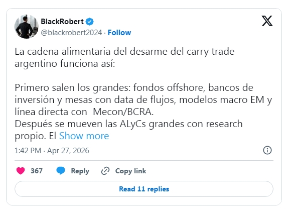 Sin embargo, el economista Gabriel Caamaño relativiza la distinción por nacionalidad. Sostiene que, ante un cambio de escenario, los primeros en correr suelen ser los inversores locales. Y agrega que, con un cepo mucho más flexible para individuos, tanto argentinos como extranjeros podrían desarmar posiciones con rapidez. La diferencia, aclara, pasa por los institucionales, que aún tienen restricciones.