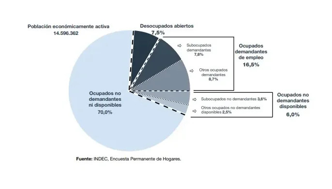El dato implica que entre 1,6 y 1,7 millones de personas se encuentran desocupadas en los principales aglomerados urbanos, cifra que extrapolada a nivel nacional supera los 3 millones de argentinos que buscan trabajo sin conseguirlo.