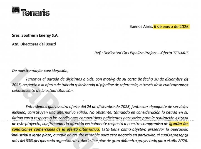 El documento que prueba la maniobra de Techint para presionar al Gobierno y quedarse con el gasoducto