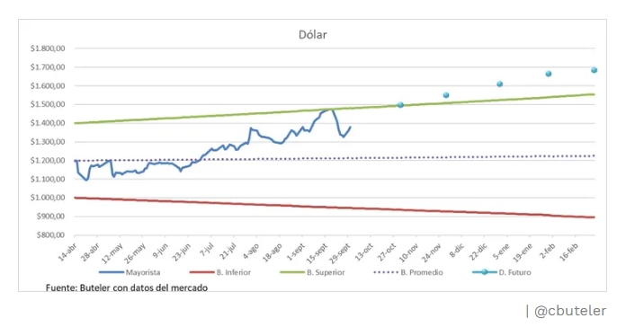 El dólar oficial trepó un 2,8% ($38) a lo largo de septiembre en el segmento mayorista, en un mes que estuvo marcado por los altibajos, luego de que el miércoles 17 tocara superara por primera vez el techo de la banda (entonces a $1.474,3) y cerrara a $1.474,50.