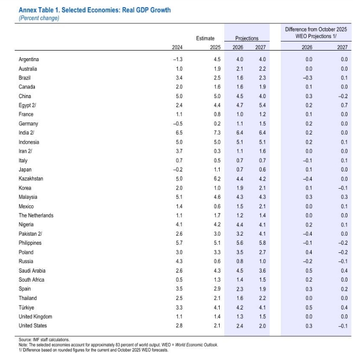 Según la actualización de las Perspectivas de la Economía Mundial, el crecimiento global se mantendría en 3,3% en 2026, en línea con 2025 y 0,2 puntos porcentuales por encima de la estimación publicada en octubre pasado.