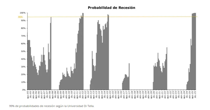 Este jueves se conocieron datos del Indicador Líder que elabora la Universidad Di Tella que busca anticipar cambios de tendencia en el ciclo económico y que en enero cayó medio punto en su versión desestacionalizada y 2 puntos respecto de enero del año pasado.