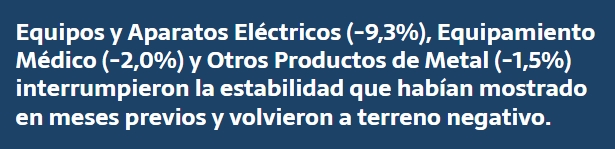 Santa Fe (-3,5%) volvió a terreno negativo tras ocho meses consecutivos de crecimiento en términos interanuales, mostrando una marcada desaceleración en su desempeño. Córdoba (-6,2%), Mendoza (-5,1%) y Entre Ríos (-3,2%) también mostraron descensos, revirtiendo los avances parciales alcanzados en el primer semestre. Por su parte, Buenos Aires (-6,2%) continuó mostrando el desempeño más desfavorable entre las principales jurisdicciones metalúrgicas, sin señales de estabilización en su nivel de producción.