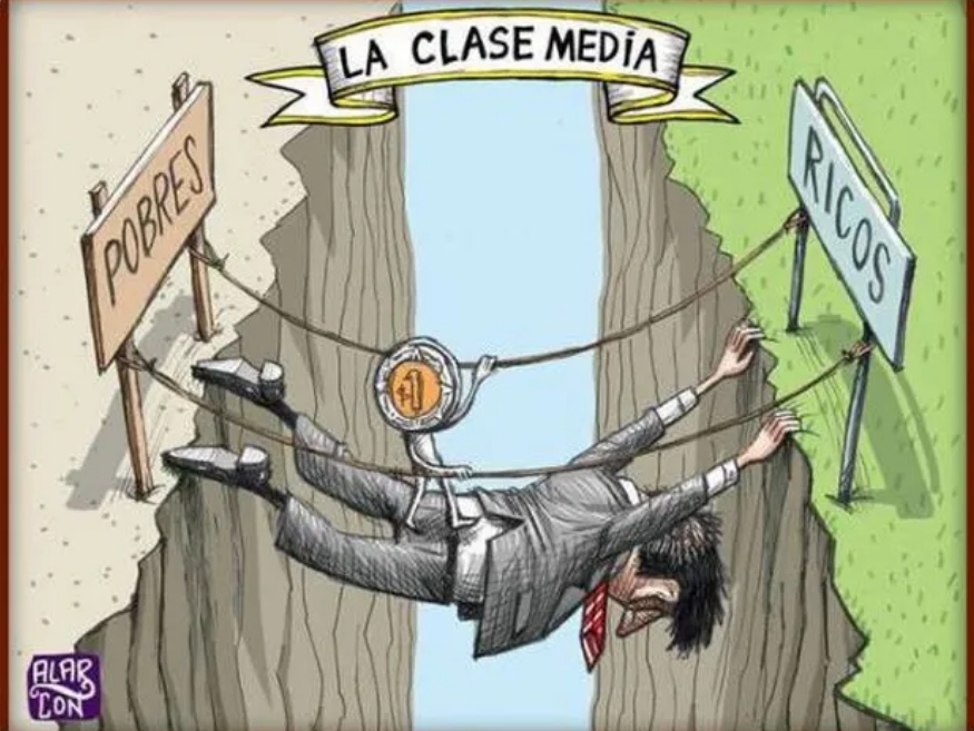 La clase media, que tiene algo de vinculación económica y mucho de aspiracional, se mantiene estancada. Los dos canales de ascenso social hacia ese segmento socioeconómico que supo dar tranquilidad a quienes lo alcanzaban no cumplen esa función. La educación y el trabajo ya no aseguran el acceso a la clase media. En términos meramente económicos, para ser considerado de clase media, los ingresos tienen que ser entre $2.000.000 y $6.500.000. Esto representa aproximadamente entre 2 y 5 canastas básicas totales.