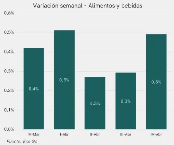El relevamiento también anticipa que la inflación general podría ubicarse cerca del 2,5% en abril, en un contexto donde los precios mantienen una tendencia ascendente. De acuerdo con la consultora Eco Go, el dato aún es preliminar, pero confirma que los alimentos siguen siendo uno de los componentes más sensibles de la inflación.