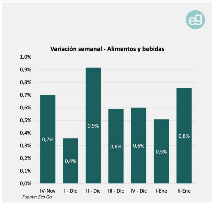 Los alimentos y bebidas subieron 0,5% en la segunda semana de enero del 2026