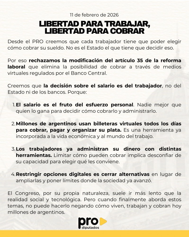 Como contó LPO, el ministro de Desregulación había colado el artículo 35 en la reforma que modificaba el 124 de la Ley de Contrato de Trabajo, que establece la obligatoriedad de pagar en bancos o entidades autorizadas por el Banco Central. Sturzenegger agregó a "proveedores de servicios de pago" como las billeteras virtuales.