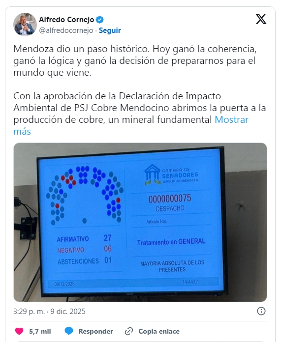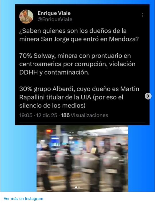 En tanto, el otro 70% del proyecto minero San Jorge, que ahora gracias al impulso de gobernador Alfredo Cornejo y la Legislatura provincial avanza en la provincia, pertenece a Solway, una minera con gran prontuario en Centroamérica por corrupción, violación de los derechos humanos y contaminación ambiental. El proyecto está ubicado a 37 kilómetros de Uspallata y a 97 kilómetros de la ciudad de Mendoza.
