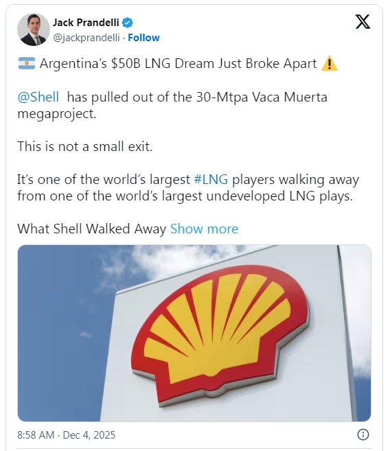 No es un tema menor. Como analizaron analistas internacionales, pone en duda la proyección de Vaca Muerta como un polo de desarrollo de GNL. La salida de Shell se suma a la anterior fuga de la malaya Petronas.