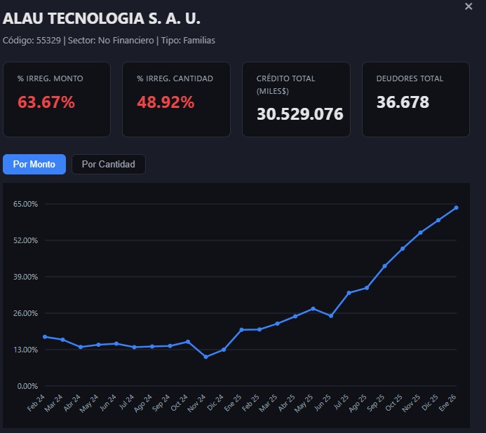 El caso de Ualá concentra la atención. No solo por el nivel sino por la composición. En el segmento bancario la mora de Ualá ronda el 43%. Pero en el negocio no financiero trepa a un impresionante 63%. Es ahí donde el problema se vuelve más agudo: fuera del perímetro regulado, con mayor riesgo y menor capacidad de control.