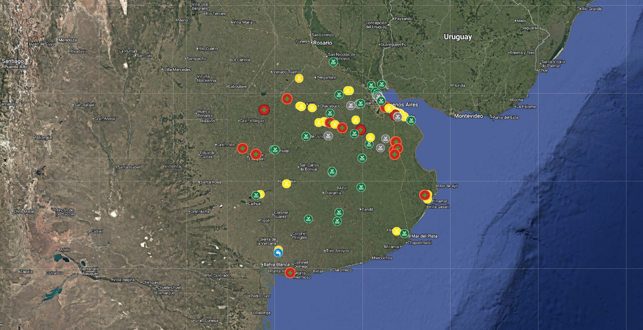 La Subsecretaría de Recursos Hídricos del Ministerio de Infraestructura y Servicios Públicos de la Provincia de Buenos Aires informó que, al cierre del mes de diciembre, General Pinto, La Plata y Lobos se encuentran en Alerta Roja por presencia de cianobacterias, lo que implica riesgo alto para la salud en cuerpos de agua recreativos. El reporte, elaborado en el marco del Programa de Gestión Integral de Cianobacterias, advierte además que otras diez comunas están bajo Alerta Naranja (riesgo medio): Alberti, Alem, Avellaneda, Chascomús, General Madariaga, Lezama, Monte Hermoso, Rivadavia, Trenque Lauquen y 25 de Mayo. En tanto, el Río de la Plata se mantiene en nivel amarillo, considerado de riesgo bajo.