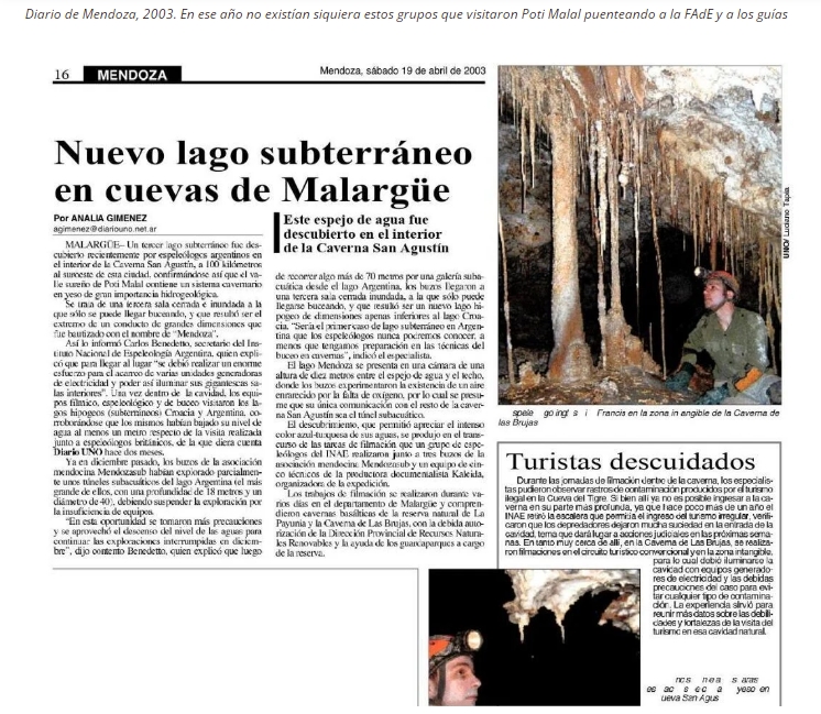 Museólogo, profesor de Historia jubilado y presidente de la Federación Argentina de Espeleología (FAdE). Escritor y periodista. Co-fundador de la Biblioteca de la Memoria Jaime De Nevares (2007) y de la Agrupación Luis Barahona (2018), Malargüe. Colaborador de nuestro diario desde -casi- los orígenes, en temas históricos, políticos y ambientales.En la primera parte de esta serie (1) relatamos un circo inventado por los que se conocen como espeleotruchos o espeleotrolls (2), personas que basan su poder en las redes sociales desde por lo menos hace 20 años. Estuvieron adentro de la Federación Argentina de Espeleología (FAdE) y hasta pretendieron dotar de "legalidad" a asambleas virtuales sin previa publicación en el Boletín Oficial ni informar a la Dirección de Personas Jurídicas. Cosas como esas, que para las autoridades ambientales provinciales parecen tener más legitimidad que los trabajos de campo, siguen sucediendo en nuestra provincia, especialmente en Malargue, que también en Espeleología es zona de sacrificio.