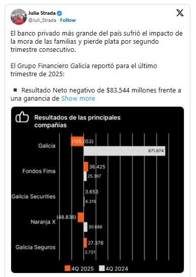 El Galicia perdió 83 mil millones y marca el impacto de la mora en los bancos
