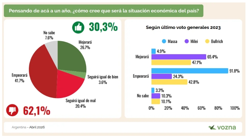 Las perspectivas a futuro también muestran señales negativas. Solo el 30,3% de los encuestados cree que el país mejorará o se mantendrá estable en el próximo año.
