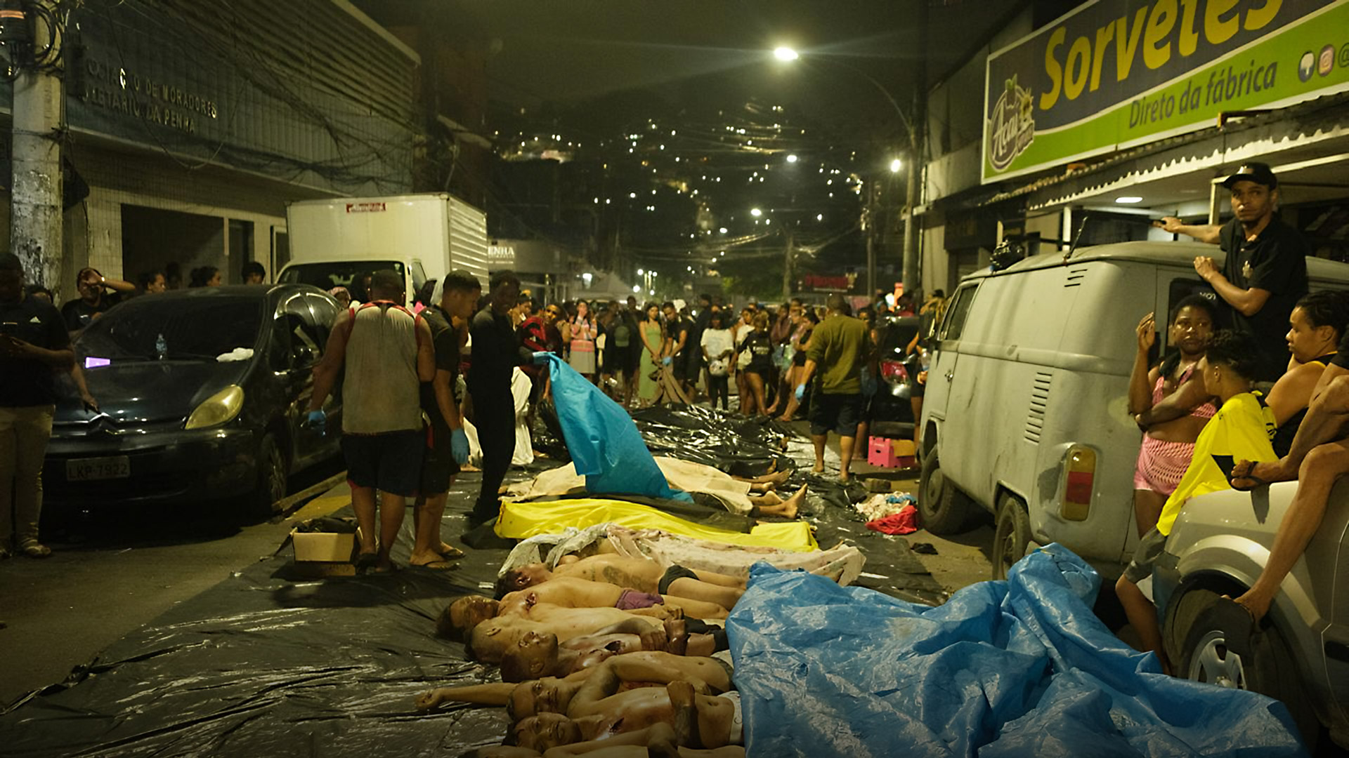 Delgados, gordos, morenos, negros, blancos, tatuados, viejos, jóvenes: los cuerpos se multiplicaban a medida que una camioneta negra los traía de distintos puntos de la favela. Los cargaba un grupo de vecinos liderados por Erivelton Vidal Correia, presidente de la Asociación Comunitaria del Parque Proletário da Penha. Con guantes quirúrgicos, alineaban los cuerpos uno al lado del otro, cabeza con cabeza, sobre una gran lona negra y azul, en una imagen que luego acaparó los titulares.