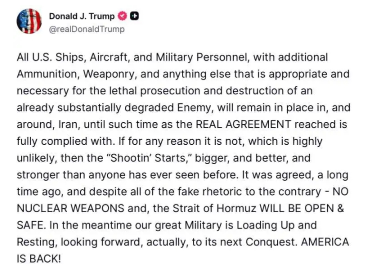 Y el presidente Trump promete que una vez que se alcance un acuerdo de paz permanente, el estrecho de Ormuz estará "ABIERTO Y SEGURO" …