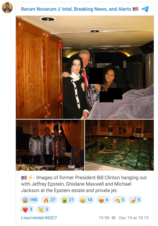 Otras personalidades fotografiadas junto a Epstein fueron el expresidente de EE.UU., Bill Clinton, el cantante Michael Jackson y el músico Mick Jagger, entre muchas otras.