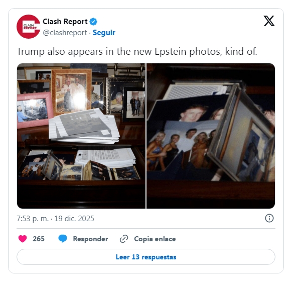 De entre estas, The Guardian reveló dos fotos grupales del presidente estadounidense, Donald Trump. En una, el actual mandatario aparece junto a varias mujeres y, en otra, ya conocida por el público, fue captado junto a Melania Trump, Ghislaine Maxwell y Epstein.