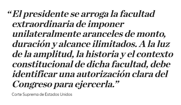 En un fallo histórico, que acompañó la mayoría conservadora, el máximo tribunal de Estados Unidos dijo que debió pedir autorización al Congreso para imponer los aranceles.