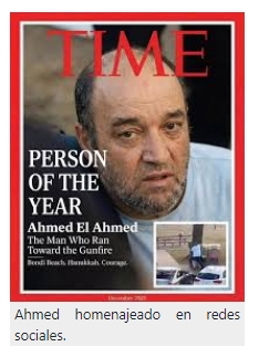El transeúnte que desarmó a uno de los dos atacantes en el atentado de la playa de Bondi en Sídney (Australia) ha sido aclamado como un «héroe», por parte de los medios nacionales, del primer ministro de Nueva Gales del Sur, Chris Minns. Incluso, ante el desarme de la narrativa sionista, en redes digitales hubo quienes intentaron negar que era musulmán. Ahmed tuvo que ser operado tras recibir al menos cuatro disparos. «Anoche, su increíble valentía salvó sin duda innumerables vidas», afirmó el primer ministro local.