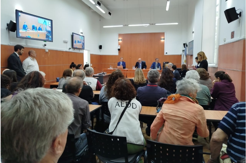 El reclamo multitudinario, con participación de sobrevivientes, familiares, querellantes y representantes de partidos políticos y de organismos de derechos humanos, se hizo en la vereda y en una audiencia realizada en los tribunales de Comodoro Py.