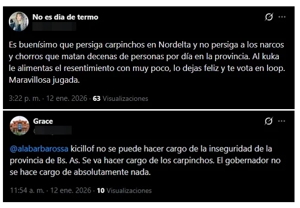 La intervención desató una ola de críticas en redes sociales, donde usuarios cuestionaron las prioridades del Gobierno bonaerense y el despliegue del operativo. Algunos mensajes apuntaron a la inseguridad en la provincia, mientras otros calificaron el procedimiento como desmedido frente a otros problemas estructurales.
