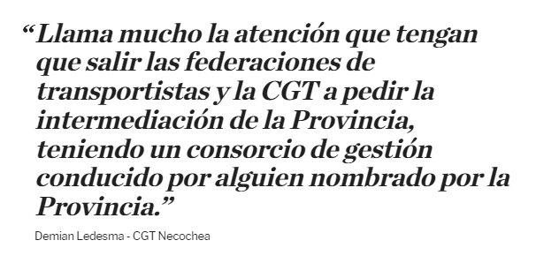 "Llama mucho la atención que tengan que salir las federaciones de transportistas y la CGT a pedir la intermediación de la Provincia, teniendo un consorcio de gestión conducido por alguien nombrado por la Provincia", dijo a LPO el titular de la CGT Necochea, Demian Ledesma.