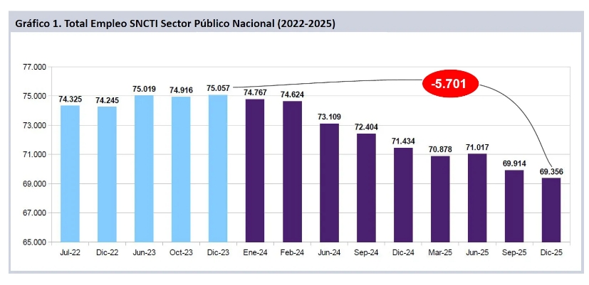 El relevamiento advierte que la tendencia descendente del empleo público en el área se profundizó durante el último trimestre de 2025 y continúa configurando un escenario de retracción en el sistema científico.