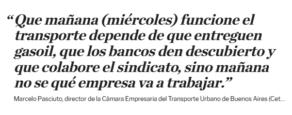 "Que mañana (miércoles) funcione el transporte depende de que entreguen gasoil, que los bancos den descubierto y que colabore el sindicato, sino mañana no se qué empresa va a trabajar", dijo a Futurock.