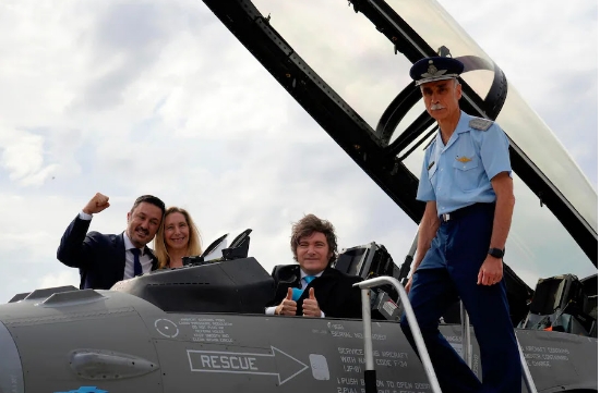 Milei estuvo en Río Cuarto a fines del año pasado junto a Petri y su hermana Karina para fotografiarse con los primeros seis aviones que Dinamarca ya envió a la Argentina. El Presidente pretende vender la compra de los aviones como un hecho "histórico". Aquella vez, desde esa ciudad cordobesa, sostuvo que "es un honor presentar estos aviones F-16, son un símbolo de la Argentina que estamos construyendo y hoy más que nunca podemos decir que las fuerzas del cielo nos están cuidando".