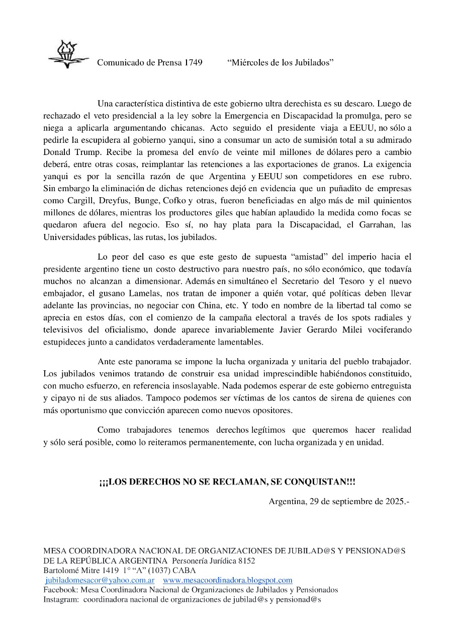 COMUNICADO DE PRENSA N° 1749