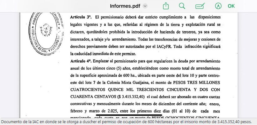 Lo inexplicable es cómo el Instituto Autárquico de Colonización y Fomento Rural (IAC) —que reconoce que el territorio está en disputa y que es fiscal— le otorgó al empresario una autorización de ocupación precaria, el "primer paso para adueñarse de las tierras", tal como explicó el abogado de la comunidad, Virgilio Sánchez, quien también alertó que durante años la comunidad pidió ese mismo permiso sin obtener respuesta. Mientras, se multiplican las detenciones contra la Nación Mapuche, el despojo territorial continúa.