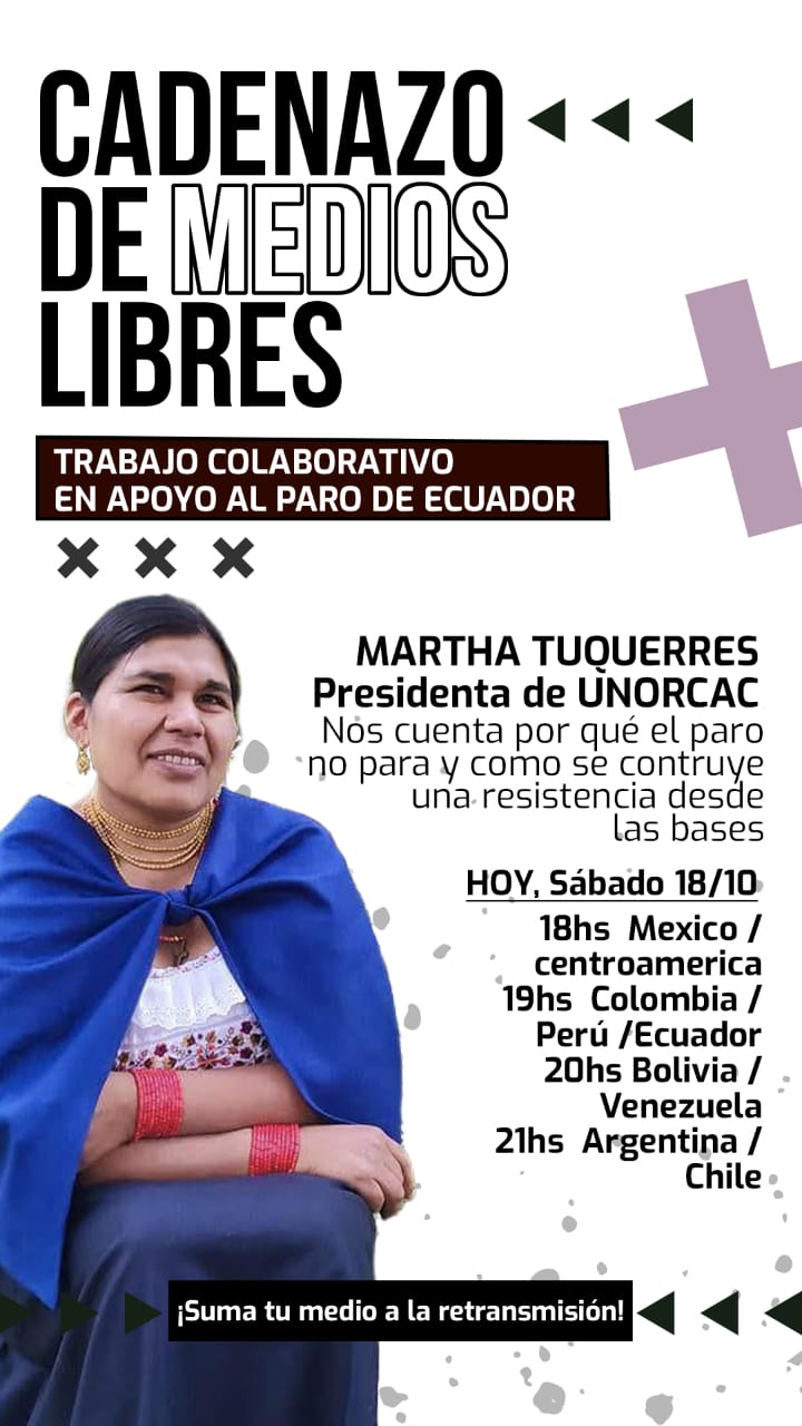Una amplia red de Medios Libres de nuestramérica rompemos el cerco mediático sobre la situación en Ecuador y lanzamos un Cadenazo de manera simultánea y coordinada.