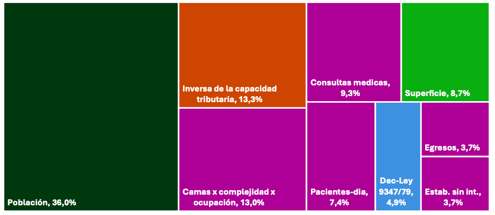 El importe que surge de ese porcentaje se distribuye luego entre los 135 municipios de acuerdo con el cuestionado CUD, un índice que determina por resolución todos los años el ministerio de Economía. Ese índice surge de una serie de variables como la población de cada municipio, su capacidad tributaria (inversa), la superficie, la cantidad de camas en hospitales, el número de pacientes, las consultas médicas,
