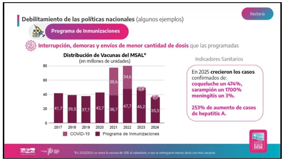El golpe de gracia al sistema se da por la eliminación del plan Remediar, que llega a 16 millones de personas, y por la reducción del envío de vacunas a las provincias, lo que está generando efectos devastadores, con el crecimiento de enfermedades prevenibles y aumentos en las tasas de mortalidad.