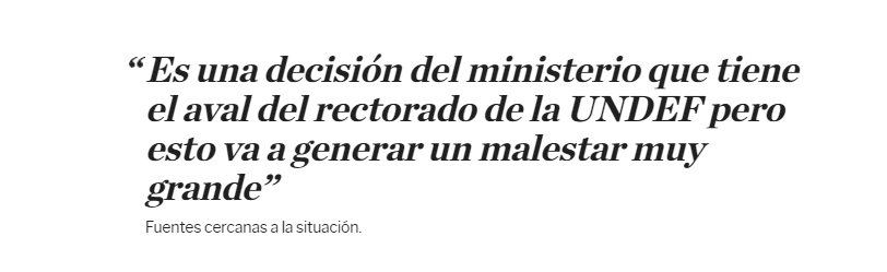Estas versiones inquietan a los docentes que trabajan en esas facultades y genera mas malestar entre los militares que rechazan la gestión de Petri por los múltiples problemas que se acumulan desde el inicio de la gestión. "Es una decisión del ministerio que tiene el aval del rectorado de la UNDEF pero esto va a generar un malestar muy grande", apuntan.