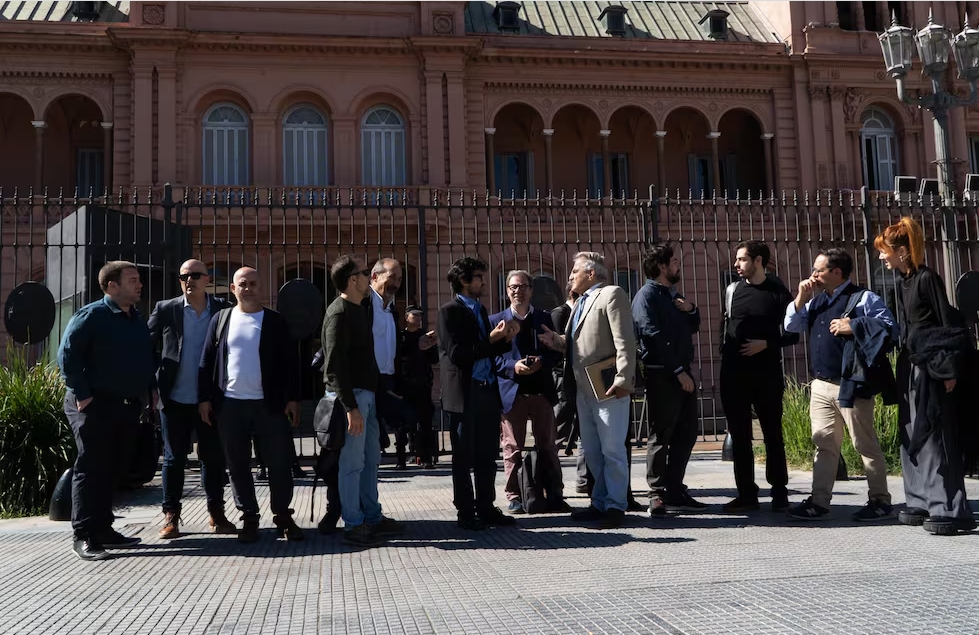 Más temprano, algunos de los legisladores de la comisión se acercaron solidariamente a la puerta de la Casa Rosada, donde los periodistas acreditados denunciaron el cierre de la sala de prensa y la suspensión del permiso de sus ingresos.