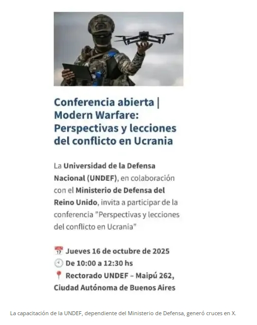 Ante la consulta de PERFIL, el Ministerio de Defensa explicó que la charla, originalmente prevista para 2024, fue reprogramada y tendrá lugar este jueves en CABA, "no involucra a la embajada británica". "Se trata de una delegación de expertos británicos que vienen a hablar sobre la guerra en Ucrania. Es una charla académica más", indicaron fuentes cercanas a Luis Petri.