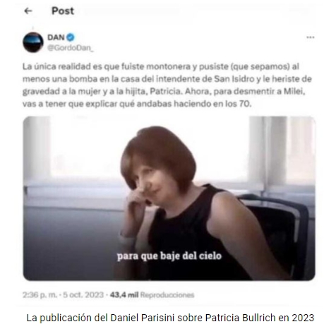 Sin embargo, Bullrich no fue la única a la que le respondió, en la volteada también cayó el referente de las Fuerzas del Cielo, Daniel Parisini, también conocido como "Gordo Dan", quien en el reportaje asintió a los dichos de la ministra.