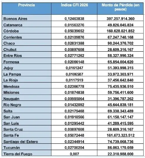 El ahogo financiero al que somete el gobierno de Javier Milei a las provincias podría profundizarse si se aprueba la reforma laboral que promueve el Ejecutivo en el Congreso. Tras los recortes –casi hasta su eliminación total—de las transferencias no automáticas a las provincias, para mostrar un supuesto equilibrio fiscal, con la reforma laboral avanzará sobre ingresos coparticipables, como Ganancias e impuestos internos. De acuerdo con cifras de la Asociación de Empleados Fiscales e Ingresos Públicos (AEFIP), el monto para distribuir entre provincias que estaría afectado es de 3,2 billones de pesos, equivalente a 2.240 millones de dólares al tipo de cambio implícito en el Presupuesto 2026 (1.423 pesos).