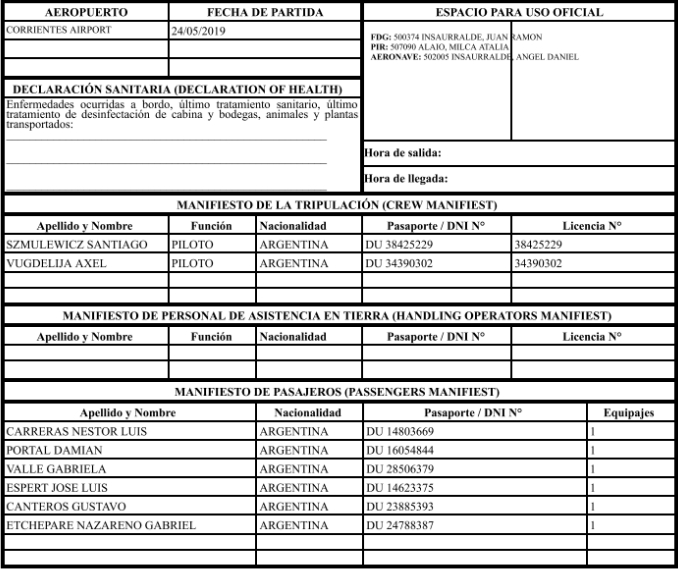 Por eso como parte de la pesquisa se le había requerido un informe a la PSA, que arrojó varios datos interesantes. En algunos trayectos Espert iba acompañado de su candidato a vice, el periodista Luis Rosales, a veces también con Nazareno Etchepare organizador de la campaña e incluso con su esposa, Mercedes González, y aparecen otros nombres como el empresario Iván Sherman, inversor en un fondo buitre. A todo esto se suma un aspecto llamativo: hay tres vuelos en los que Espert viajó solo. Usó uno de los aviones para hacer un trayecto mínimo entre San Fernando y Pergamino (esto lo hizo también con su esposa cierta vez) de donde es oriundo y donde vive su familia. Es difícil pensar que eso fuera a hacer campaña.