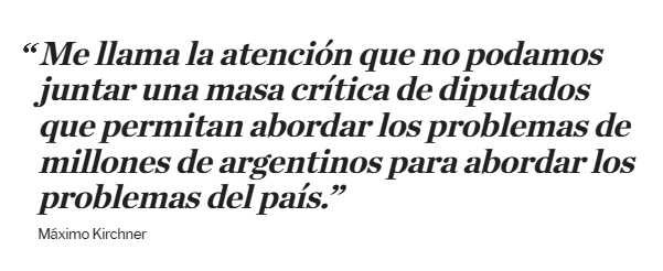Como sea, el planteo de Máximo parece una forma de condicionar el armado amplio en el que trabajan varios dirigentes del peronismo y que Axel Kicillof avala. El líder de La Cámpora hace valer el peso del kirchnerismo duro dentro peronismo.